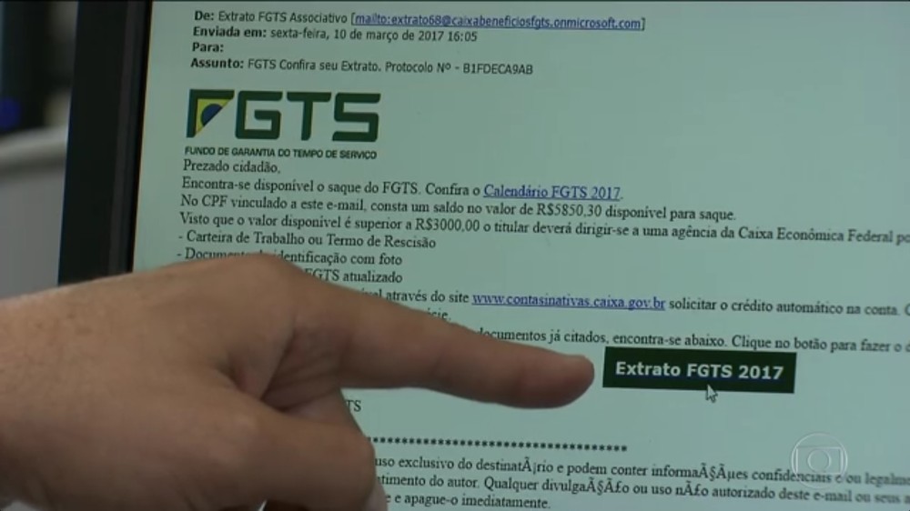 Um golpe que está sendo aplicado pela internet permite que criminosos acompanhem a movimentação financeira daqueles que tentam acessar o saldo do Fundo de Garantia por Tempo de Serviço (FGTS), segundo informou o SPTV nesta terça-feira (14).